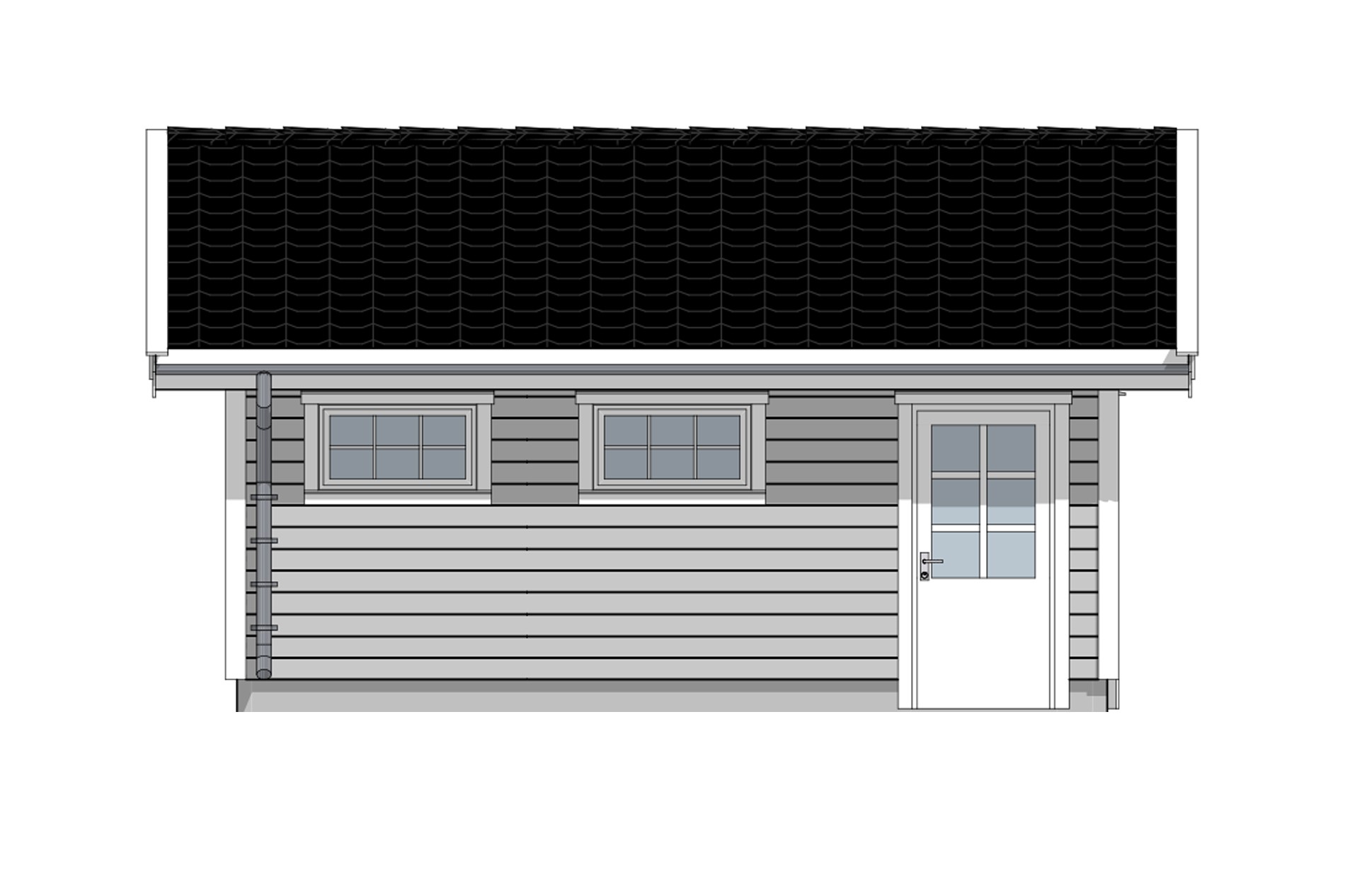 Om familien disponerer mer enn en bil, er det svært praktisk med dobbel garasje. En dør med smårute-vindu er plassert på vestsiden av garasjen for enkel tilgang uten å måtte åpne garasjeprotene. Vinduer er satt inn på både øst- og vestsiden av bygget for godt lysinnslipp og garasjen fremstår som klassisk og fin.